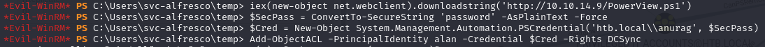 Give the user DCSync privileges. We’ll use PowerView (PowerView.ps1) for this. First download PowerView and set up a Python server in the directory it resides in: