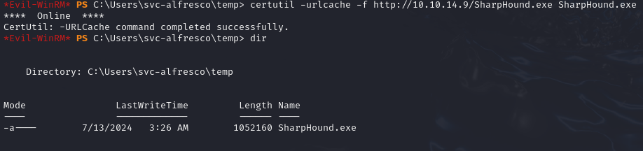 Start neo4j and BloodHound on Kali and copy Sharphound.exe to the target box: